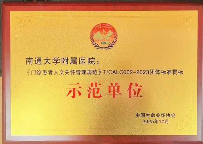 近日,由中国生命关怀协会主办的全国“医院护理人文关怀标准化建设”培训班在湖北武汉召开。会上,中国生命关怀协会公布了《门诊患者人文关怀管理规范》首批团体标准贯标示范单位验收评审结果,我院门诊凭借卓越的人文关怀实践和扎实的工作基础,以优异的成绩通过评审,成为全国首批《门诊患者人文关怀管理规范》团体标准贯标示范单位。