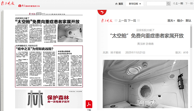 扬子晚报:这家医院太暖了 “太空舱”免费向重症患者家属开放