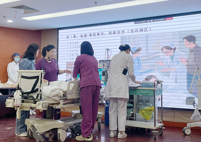活动还特别设置了技能竞赛环节,南通市儿科质控成员单位的医护人员进行了心肺复苏及儿科急诊抢救室现场救治模拟比赛。各单位医护人员通过随机抽签的形式组队参赛,大家协同合作、积极投入,不仅强化了急救知识的临床应用,也促进了各单位之间的交流与协作。赛前,南京市儿童医院重症医护团队演示了“暴发性心肌炎”的救治流程。