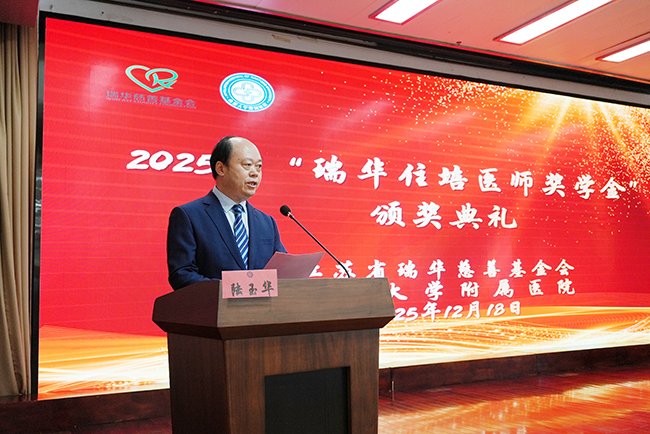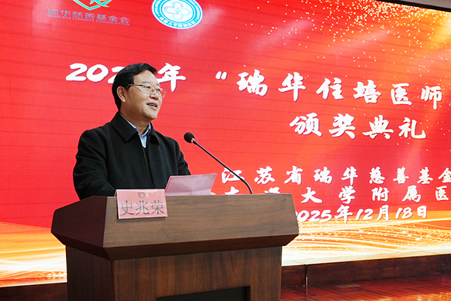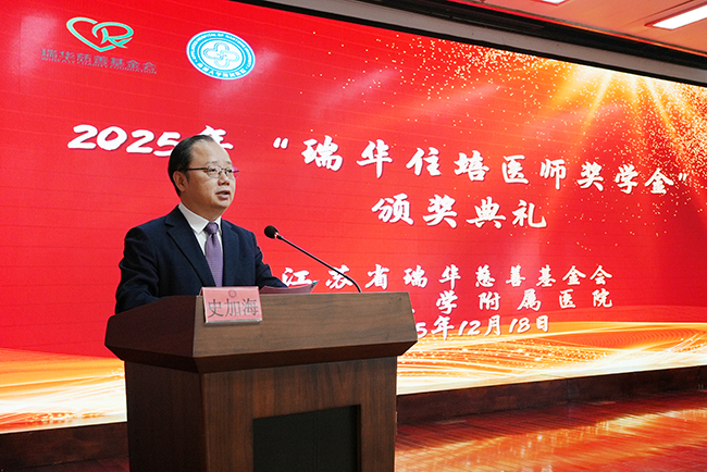 史加海代表医院对瑞华慈善基金会给予我院住院医师规范化培训工作的慷慨资助表示衷心感谢,对获得2025年度瑞华住培奖学金的学员表示热烈祝贺。他表示,在瑞华慈善基金会的资助下,我院住院医师规范化培训工作步入高质量发展的新阶段,他希望全体住培学员以坚定的理想信念筑牢青春之基,将个人成长融入健康中国建设的大局,刻苦钻研、精益求精,在临床实践中不断提升专业能力与人文素养,坚守初心、勇往直前,为人民的健康事业贡献自己的智慧和力量。