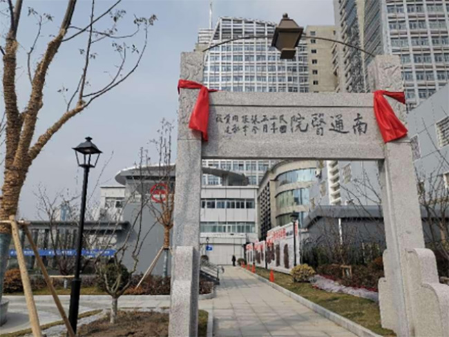 西院区“善园”,枕濠河之畔,临地铁通途。仿建1914年南通医院老院门的石质门坊,无声诉说着张謇兄弟“用私资建设”的义举;31米长的浮雕墙,如徐徐展开的竹简,将张謇兴办实业、教育、医疗的公益图谱与医院百十年关键历史场景立体呈现;三座凉亭楹联取自张謇手迹,“百世可知其惟圣者,九能咸备是谓大夫”,将先贤智慧与医者担当融为一体,成为医患共享的文化休憩之所。