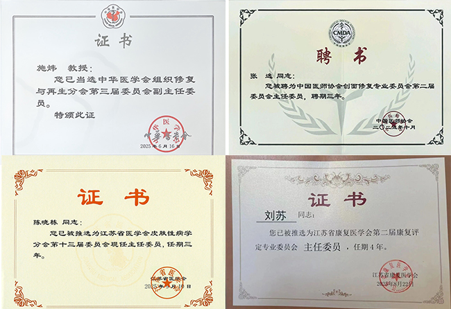 医院多位专家在国家级和省级学会中担任重要职务:张逸教授当选中国医师协会创面修复专业委员会主任委员,施炜教授当选中华医学会组织修复与再生分会副主任委员,陈晓栋教授当选江苏省医学会皮肤性病学分会主任委员,刘苏教授当选江苏省医学会高压氧医学分会候任主任委员等,这些学会任职充分彰显了医院在相关领域的学术影响力。2025年中华医学会组织修复与再生分会学术会议在南通举办,这是我院首次承办中华医学会主办的国家级学术会议。