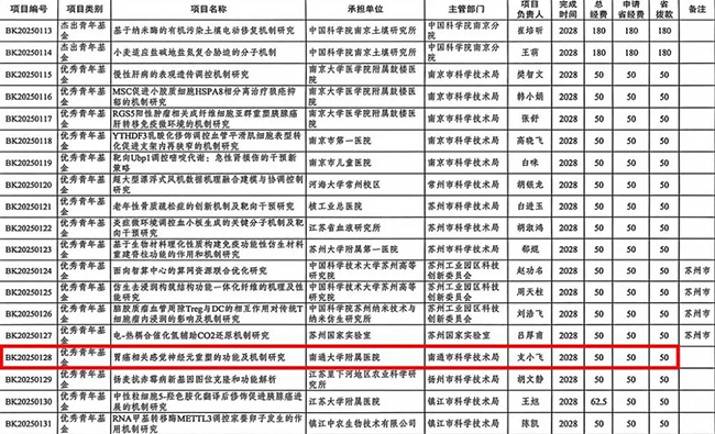 支小飞教授的“胃癌相关感觉神经元重塑的功能及机制研究”项目喜获江苏省优秀青年基金立项,这是医院第二次获此资助,实现连续两年榜上有名。此外,医院还获得江苏省卓越博士后4人,江苏省科协青年科技人才6人,为青年科研人才的成长提供了有力支持。