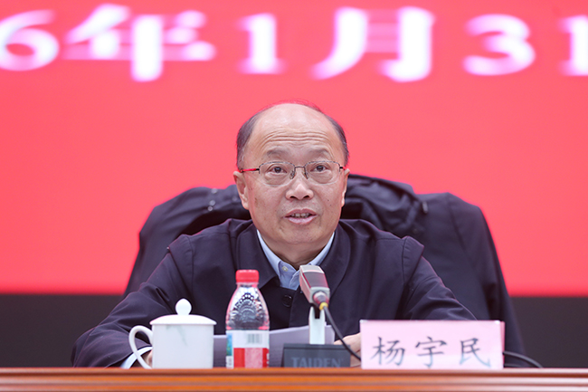 杨宇民表示,过去的一年附属医院在国家公立医院绩效监测结果连续四年获得A+,江苏省研究型医院建设顺利收官,骨科新入选国家临床重点专科建设单位,率先在全省迈入“脑机融合”神经疾病治疗新阶段,国家级人才自主培养实现历史性突破,在Nature等国际顶级期刊发表研究成果等,他代表校党委充分肯定了医院2025年取得的高质量发展成效。杨宇民对医院下一步工作提出要求:一要牢牢把握“稳”的基调,在筑牢发展根基上实现新作为;二要持续激发“新”的动能,在推动创新突破上实现新作为;三要全面强化“进”的担当,在提升党建质量上实现新作为。