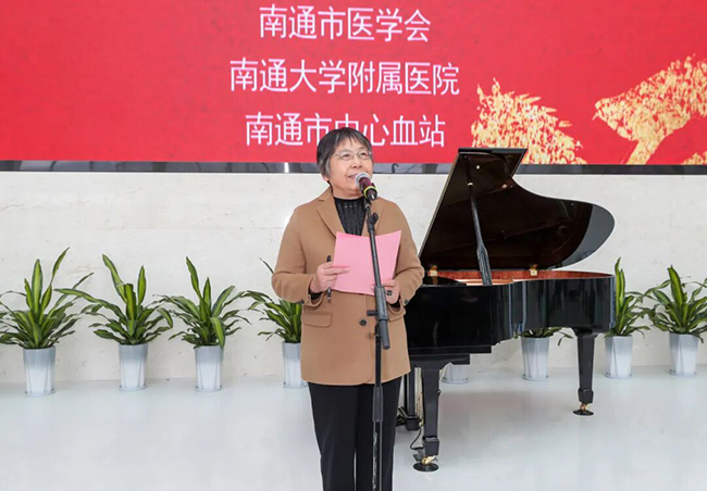 王晓敏向获得2022—2023年度全国无偿献血奉献奖的热血英雄表达了诚挚的谢意,向通大附院对无偿献血公益事业的大力支持予以肯定。她强调,无偿献血是彰显城市文明的重要标志,也是医务工作者与社会各界共同的责任。南通市医学会将继续发挥行业优势,加强无偿献血科普,倡导健康向上、向善的公益理念,带动全社会形成崇尚公益、乐于奉献的良好氛围。