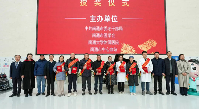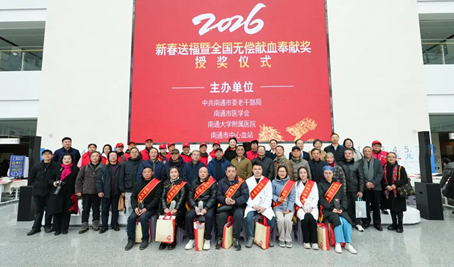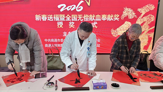 灵蛇辞旧岁,金马迎新春。在2026年新春佳节来临之际,为弘扬无偿献血的公益精神,致敬热血奉献的爱心人士,为市民送上新春的美好祝福,2月2日上午,由中共南通市委老干部局、南通市医学会、南通大学附属医院、南通市中心血站联合主办的“送爱送福传暖意 献血献爱守健康”2026年新春送福暨全国无偿献血奉献奖授奖仪式在我院东院区举行。南通市医学会会长王晓敏,南通市卫健委副主任、市疾病预防控制局局长、党组成员吴徐明,南通市中心血站站长许诚,及我院党委副书记、院长史加海,党委委员、副院长、总会计师马强出席活动。