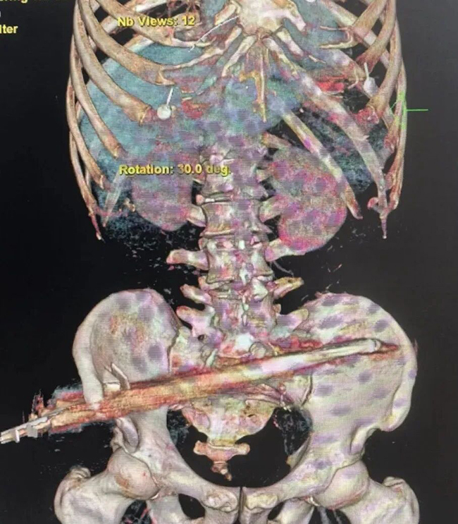 12月26日下午,伴随着急促的鸣笛声,一辆120救护车飞速驶入我院。车上的李先生因施工时不慎从1.8米高处坠落,被地面竖立的钢筋从臀腹部径直贯穿。时间就是生命,“启动创伤救治绿色通道!”早已待命的急诊医学中心团队迅速响应。“必须尽快明确钢筋在体内的走行路径,排查大血管及重要脏器损伤情况!”沈丛林果断表示,患者被迅速转运至CT室。