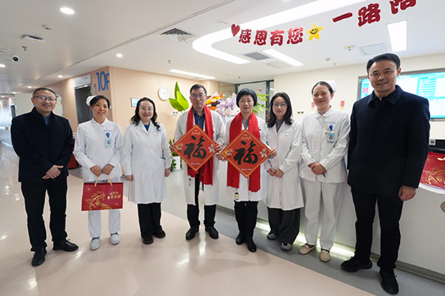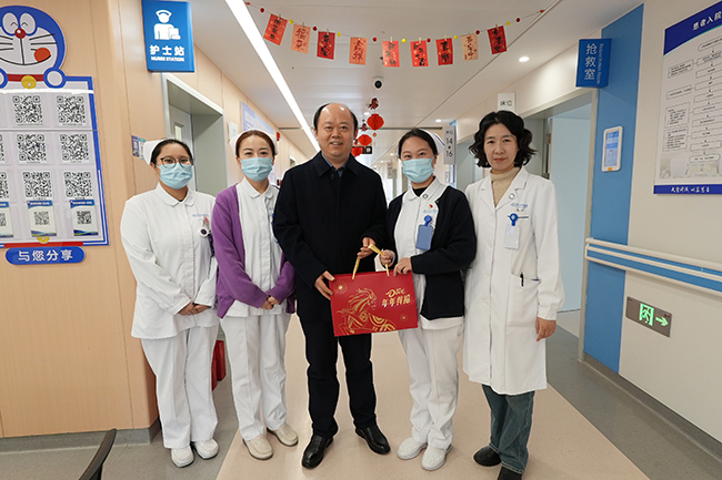 骐骥驰骋迎新岁,温暖关怀励人心。春节期间,院领导施炜、史加海、赵建美、葛志明、马强、顾志峰、鲁菊英、周晓宇、陆玉华、施振佺分别率队,深入医院临床、医技科室及后勤服务保障各岗位,亲切慰问春节期间依然坚守岗位、默默奉献的干部职工,向他们致以马年新春的美好祝愿,对大家舍小家、为大家的辛勤付出表示诚挚的感谢和崇高的敬意。 “新年好!给大家拜年了!”“大家辛苦了,祝大家马年顺遂、马到成功!”每到一处,院领导都与一线值班人员亲切握手、深入交流,询问春节期间的医疗运行、门急诊服务、应急处置准备及后勤保障落实等情况,并亲手送上暖心慰问品,让每一位坚守者都能感受到医院大家庭的温暖与关怀。 院领导叮嘱大家,春节期间要始终保持饱满的精神状态和严谨的工作作风,严守医疗安全底线,做好诊疗服务保障。过去一年,全体职工凝心聚力、实干笃行,推动医院各项工作稳步向前,新的一年是医院高质量发展的奋进之年,希望大家以龙马精神续写新篇。大家纷纷表示,新的一年将始终坚守医者使命、践行服务初心,全力以赴做好各项医疗服务工作,用实际行动为医院新一年的跨越发展贡献更大力量。 相关职能部门负责人陪同慰问。 (供稿:陈静)
