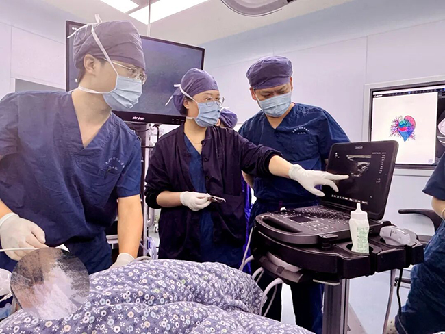 看似“简化”的手术,背后却是对医疗团队技术水平的极致考验。由于“无管麻醉”摒弃了肌肉松弛剂,膈肌与纵隔的自然起伏会大幅加剧器官位移,就像在晃动的“平台”上操作,给手术精准度带来极大挑战。为破解这一难题,手术医生提前为李女士注入局部麻醉剂,有效减少胸部呼吸波动;麻醉团队则全程精准把控,通过严密监测,灵活调整麻醉药物的浓度和深度,确保李女士的呼吸、循环始终处于稳定状态,同时时刻紧盯手术进展,根据术中情况动态调整给药剂量和麻醉节奏。