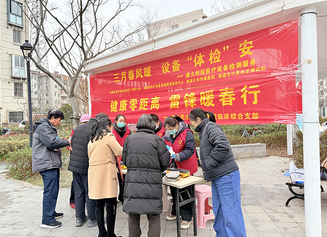 为践行雷锋精神,切实解决群众居家医疗设备使用难题,3月3日,我院联合南通市计量检定测试所共同举办的“三月春风暖 设备‘体检’安”公益服务活动在学田社区举办,志愿者们为市民提供专业的医疗设备检测与健康指导服务,将温暖与安全送到百姓家门口。