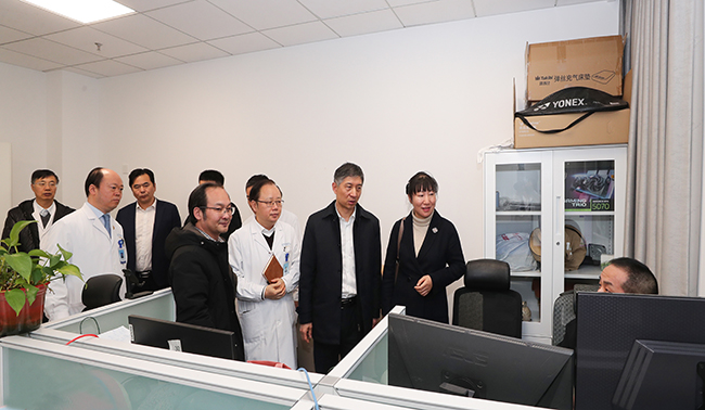 张劲松一行参观了医院信息中心机房,现场观看工程师系统演示,并实地察看医保服务站,了解信息化建设及医保服务工作情况。