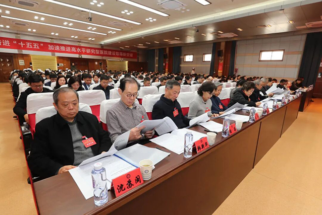 史加海作了题为《凝心聚力促发展 实干奋进“十五五” 加速推进高水平研究型医院建设取得新突破》的工作报告