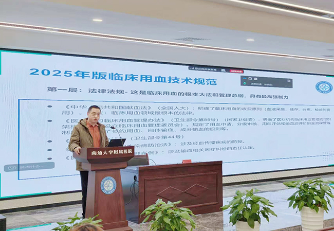 培训会上,风湿免疫科主任、内科副主任达展云教授以《医者匠心,患者安心——卅余载行医感悟》为题,结合自身从医三十余年的经历,分享对医者之道的深刻体悟。她勉励青年医师,精湛医术是守护生命的坚实基石,人文情怀是传递温暖的重要力量。作为一名被患者信赖的好医生,不仅要在细微处精准洞察病情,更要在制度框架内规范行医,在沟通中传递医者仁心的温度。输血科主任、医学检验科(特检中心)副主任丛辉围绕《临床用血技术规范(2025 版)》主题,结合临床实际工作,从患者血液管理、输血前评估与知情告知、输血相容性检测标准、血液入出库与库存管理等方面,详细解读临床用血相关制度法规、操作规程及风险防控重点,助力青年医师强化安全用血、合理用血意识。医患沟通办公室主任、法务部主任、医务部副主任翟高峰作《依法执业与医患沟通》的专题培训,结合典型案例,深入剖析医师依法执业风险,分享了风险防范措施与医患沟通策略,并对青年医师提出严守核心制度、规范诊疗行为、加强医患沟通、筑牢安全底线的明确要求。