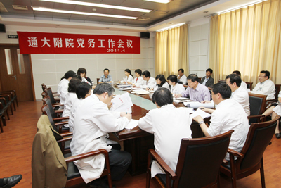 4月26日下午,我院在影像四楼中会议室召开党务工作会议,全院各党总支、支部书记、专职党务干部、群团组织负责人参加了会议,党委副书记、纪委书记杨昱华主持会议。 会上,各党总支、直属党支部书记汇报了前一阶段基层党务工作情况,各支部均按要求组织召开支委会,认真学习了2011年党政工作要点、《南通大学附属医院标准化党支部建设的实施意见》等有关文件;对党员示范岗创建工作、庆祝建党90周年系列活动等进行了深入发动,讨论酝酿,形成了初步方案。会上,各支部书记还交流了所辖科室党员干部职工近期的思想状态,专职党务干部徐菊华、夏玲、施琳玲、沈琴分别从文明创建、思想政治工作、组织、宣传、党风廉政建设等方面工作进行了部署。 会上,院党委书记张涛传达了大学党委上周召开的党务工作会议主要精神和顾晓松书记、袁银男校长在我院召开的南通大学临床医学博士学位授权一级学科建设研讨会上的重要讲话。张书记还对各支部前一阶段的工作给予了肯定,并对做好当前党务工作提出了要求,他强调,一要精心策划好党员示范岗创建工作,选好岗位,经得起考验、真正发挥好标杆作用;二要重视标准化党支部建设工作,强化管理职能,加强职工思想政治教育和党员教育管理工作;三要高度重视,认真抓好落实,责任明确,分工到位,保证各项工作落到实处。 倪健辉