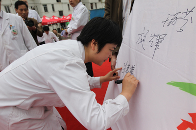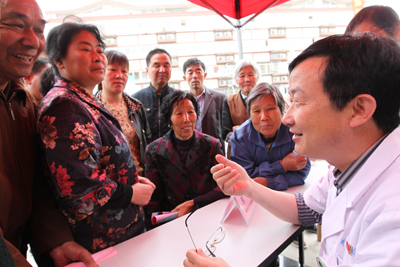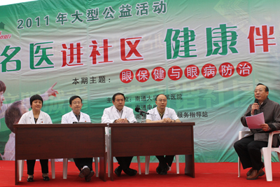 5月28日上午,由我院和南通电视台、老年人活动中心共同主办的“名医进社区 健康伴我行”系列公益活动第三场在开发区中兴街道举行。 本场活动的主题为“眼保健与眼病防治”。南通电视台知名主持人三侯与我院眼科主任医师管怀进、陈辉、朱蓉嵘,副主任医师陆宏在现场以谈话的方式,分别就南通眼病发展情况,以及近视眼、白内障、青光眼等常见眼部疾病与现场观众进行了互动。此外,医院还安排外科和内科的相关专家参加了随后的义诊,并为现场中兴街道的居民提供咨询。现场专家讲解深入浅出、贴近百姓,前来咨询的居民络绎不绝,活动反响强烈。 活动现场,管怀进主任还向活动现场以及电视机前的观众介绍了南通市眼库眼角膜捐献的情况,并呼吁大家在身后捐出眼角膜,把光明留给更多的人。 “名医进社区”公益活动每月举办一次,时间为每月最后一个周六。在为期一年的活动,我院党员专家将走入南通五县一市的十二个街道、乡镇。专家们将根据季节变化和重要健康日,有针对性地以通俗易懂的语言为群众讲解健康道理、普及健康知识,并在活动现场接受群众咨询。为迎接建党90周年,第四场活动我院党委将于六月下旬在市区环西文化广场举行“百名党员大义诊”活动。欣 仁