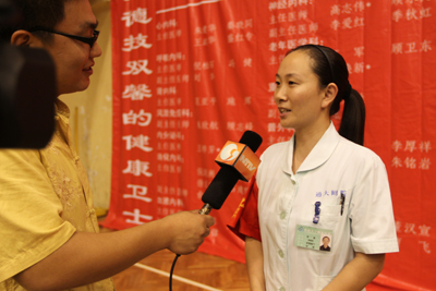 记者采访义诊志愿者