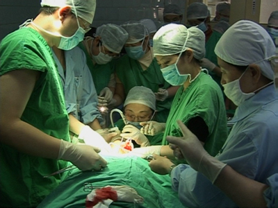 【镜头回放】 2007年2月2日,季庆在和孙子嬉戏时不慎将一颗红枣呛进了气管。当地两家医院均无法救治,其家人将他送到了通大附院。季庆的病情惊动了通大附院六个科室的数十位主任。像他这种情况,很容易当场死亡。幸好,呛进去的红枣没有把气管完全堵死。手术的问题集中在麻醉上,由于红枣的位置靠近气管分岔处,如不麻醉,在取异物的过程中,患者躁动,红枣很有可能滑落堵住支气管出口。而如果麻醉,麻醉药的呼吸抑制作用,加之患者本身的气管异物,无法插管,到时连抢救的机会都没有。 “你们只管竭尽全力抢救病人,一切后果由医院来承担。”朱健华副院长这句话,让所有参与抢救的医务人员心头一热。麻醉科张彩峰副主任医师准确地将针尖扎入病人的静脉,钮冠祎主任医师先从病人口腔插入喉镜,由于病人躁动,数次努力未果。按照计划,第二套方案启动。负责气管切开的医师以最快的速度完成了手术操作,尤易文主任手执气管镜从气管切开处插入。红枣已经涨大、软烂,尤易文主任不断调整着体位,在大家的密切配合下,尤易文主任终于夹出了残留在病人气管里的大半个红枣而这时她至少跪了一个小时。