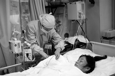 【镜头回放】 张芬是山东枣庄人,夫妻俩在南通打工维持生活,张芬2006年12月22日在某乡镇医院分娩时突发羊水栓塞,被紧急转送至通大附院。突发性羊水栓塞发生率很低,死亡率则高达80%以上。到达急诊中心时,已处于昏迷状态,出现广泛性弥漫性血管内凝血征象,而嵌顿在产道内的胎儿已见胎头。医院果断决定在急诊抢救中心搭建“临时产房”,就地分娩。胎儿娩出时,已没有呼吸,抢救小组迅速进行口对口呼吸、气管插管等急救措施后,婴儿生命略有转机后被转至新生儿室。而随着胎儿的娩出,产妇体内凝血因子消耗贻尽,出血更加猛烈,近5000ml的血液和凝血因子输入体内,仍无济于事,产妇的生命岌岌可危。在艰难的保守治疗无效后,抢救组决定实施子宫次全切除术,阻断出血源。而在当时,张芬很可能因不能耐受手术而死在手术台上。“不手术,必死,手术还有一线希望。”为此,手术组扛着风险背水一战。手术取得了成功,次日中午张芬神志清醒,恢复自主呼吸。从产妇张芬送至通大附院急诊中心到手术成功,共历时五个小时,十一个专科七十余名医护人员同时上演了一场震撼人心的“生死时速”。