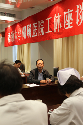 为认真倾听住院病人及家属对医院工作的意见和建议,进一步加强医患沟通,提高医疗服务质量, 10月31日下午,我院在5号楼二楼会议室召开工休座谈会。来自妇产科、儿科、五官科等病区的9名病人家属代表应邀参加,院党委副书记、纪委书记沈苏闽,副院长倪松石及相关职能部门负责人参加了会议,会议由党办主任徐菊华主持。 座谈会在友好的气氛中进行,9位病人家属代表先后发言,畅谈家人在住院期间的感受。大家普遍认为我院整体医疗水平高,医生诊断准确果断,护士“扎针”技术过硬,特别是儿科护士在扎针难度较大的情况下也能做到一针见血,很佩服附院护士的技术和服务。此外,医院良好的住院条件和亲情化的优质服务,也使病人在住院期间感受到家庭般的温暖。在肯定医院各方面工作的同时,部分代表也针对医院床位比较紧张,医护工作量大等方面问题提出了一些合理化建议。 听完大家的发言后,副院长倪松石从医院承担的医疗任务和医院如何注重提高医疗质量等方面情况与病人家属进行了沟通交流,并表明提高医疗质量是我院医院管理永恒的主题。 最后,党委副书记、纪委书记沈苏闽代表医院,对病人家属提出的宝贵意见和建议表示感谢。并要求各职能部门紧紧围绕“三好一满意”活动的宗旨,对病人家属提出的意见建议会后及时办理,在平时工作中切实做到服务好、质量好、医德好、群众满意,继续在医疗技术、服务水平、医德水平、就医环境等方面狠下功夫,以更好地为病员服务,促进医患和谐。傅 轩