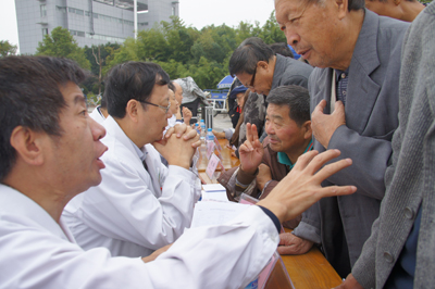 10月29日上午,尽管天空飘着小雨,我院“名医进社区 健康伴我行”系列公益活动第八场——“了解血压 控制血压 保持健康”还是在通州区江海明珠大广场如期举行。这也标志着该活动走出南通主城区,将为更多周边区、县的市民朋友带去健康知识。 虽然小雨不断,但依然挡不住通州市民的热情,好多市民都是骑着摩托车、电瓶车,驱车十几公里甚至几十公里奔着我院名医而来的。专家们尽心尽力为远道而来的群众服务,现场气氛十分热烈。 南通电视台著名主持人季风与我院老年医学科顾卫东主任医师、心内科盛红专主任医师首先以现场谈话的形式,分别从通过健康饮食、适量运动、平和心态预防高血压和选择药品、预防药品副作用、科学用药等方面治疗高血压,对现场观众进行了健康知识讲座。还就这些话题回答了现场观众的提问,与观众进行了互动交流。 本场活动是“名义进社区 健康伴我行”系列公益活动首次走出主城区,为了给通州区市民提供更全方位的优质健康服务,医院派出了强大的专家阵容,肾内科施辉主任医师,神经内科曹茂红主任医师,骨科潘丞中主任医师,泌尿外科蔡晓晴主任医师,中医科沈芳主任医师,传染科汤伟主任医师,风湿免疫科朱欣航副主任医师,呼吸内科周晓宇副主任医师,普外科陆玉华副主任医师,妇产科顾晓梅副主任医师,眼科陆宏副主任医师,消化内科张海峰主治医师,心内科顾青青住院医师等近20名医生参加了本场活动。此外院团委还派出青年志愿者为现场市民量血压、发放健康宣传册。通州市民看到附院这么多专家冒雨来给他们送健康,都感到十分高兴与感激。欣 仁