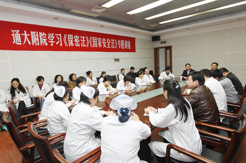 为深入推进我院“六五”普法工作,11月17日下午,我院“六五”普法领导小组特邀南通市保密局局长张永明、南通市国家安全局处长施林荣,分别为我院党政部门工作人员作了《中华人民共和国保守国家秘密法》、《中华人民共和国国家安全法》专题普法辅导讲座,职能部门70余名工作人员听取了辅导报告,“六五”普法领导小组组长、院党委书记张涛主持讲座。 讲座中,张局长、施处长分别以生动的案例、详实的数据给大家揭示了当前保密和国家安全工作面临的严峻形势,深刻解读了公民在保密和国家安全工作方面存在的认识误区和主要问题,并就如何增强保密和国家安全意识、提升防范能力方面讲授了切实可行的知识和技能。 张书记要求党政职能部门全体人员要进一步加强学习,增强保密和国家安全意识,尤其是在信息全球化的时代,更要结合医院实际注重依法使用网络,加强制度建设,保证医院信息安全。倪健辉