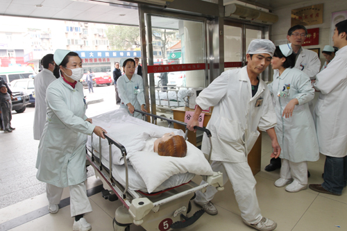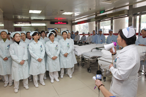当前,突发事件及危重症病人逐渐增多,为进一步提高医务人员的急救水平,加强我院的急诊急救工作,增强全体医务人员应对各种突发事件的能力,11月22日下午,我院急诊科在护理部、门诊部的支持下组织进行了急诊急救应急模拟演练,这也是急诊科开展优质护理服务进行的岗位大练兵。 此次演练设定的场景是某地发生交通事故导致30人的成批伤员由120急送我院,其中危重伤2人,重伤6人,轻伤22人。随着总指挥的一声令下,模拟演练正式开始。急诊分诊护士接120预报后迅速汇报,护士长随即汇报科护士长、科主任,护理部、门诊部接通知后,迅速召集医院大型突发事件应急队成员,相应物资准备10分钟内全部到位。急诊室接预报立即反应,对抢救区域按照红、黄、绿即危重伤、重伤区、轻伤区进行划分。由急诊科在院实习护生扮演的30名成批伤员在预检分诊护士的引导下快速分流到指定区域:2名危重伤员进入抢救绿色通道以后,医护人员按照急救程序进行急救;护士迅速迎接,评估病情、吸氧、多功能监护、开放静脉通道、采血标本等一切就绪,一组病人突发心跳呼吸骤停,抢救工作全面展开,心脏按压、开放气道、简易呼吸器辅助呼吸、气管插管……另一组演练颈托使用、骨折固定、止血包扎、胸腔闭式引流等,经过二十多分钟的紧张抢救,病人情况终于稳定;重伤区、轻伤区演练亦有序完成,本次模拟急救演练宣告结束。 演练由急诊室制定应急预案,调集全院30名护士、15名工人携10辆担架、5部轮椅参与抢救。整个急救模拟演练过程紧张有序,快速有效,包括逐级汇报、人员调度、物资配备、预检分诊、院内急救、安全转运、分流病人等内容。所有环节医护人员都迅速到位、配合默契,抢救过程合理,各项操作标准规范,体现了急诊人员的专业业务素质。此次演练不仅检验了医院急诊科突发事件处理应急预案的合理性、科学性,还进一步提高了医护人员尤其急诊护理人员的应急反应速度和应急处理能力,强化了我院医务人员的急诊急救意识,锻炼了急救操作技能,检验了医院急诊急救绿色通是否道畅通,同时也查找出了当前急诊急救工作中存在的问题,为及时整改,做好以后的急救工作和提高医院急救的整体水平打下了坚实的基础。姜丽娟