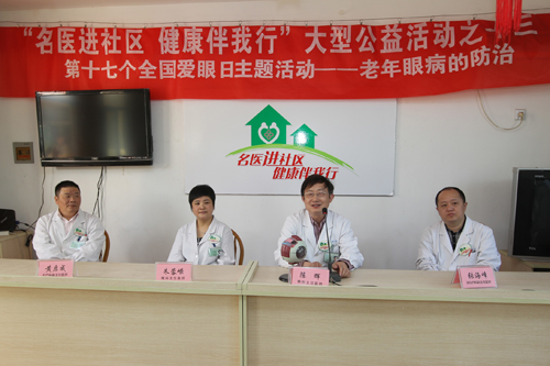 5月26日上午,由我院和南通电视台、南通市老年人活动中心共同主办的“名医进社区 健康伴我行”系列公益活动第十三场在市区新桥社区举行。 本场活动的主题为“老年眼病的防治”。南通电视台知名主持人二侯与我院眼科主任医师陈辉和朱蓉嵘在现场以谈话的方式,分别就老年人容易得哪些眼病、如何保护眼睛、如何正确选择老花眼镜、白内障的种类、白内障有哪些症状、什么时候合适做白内障手术以及如何预防白内障等话题与社区居民进行了互动。现场专家讲解深入浅出、贴近百姓、反响强烈。在随后的义诊中,眼科专家还特地从医院带来了电子眼底镜为现场居民进行免费检查,除了现场活动的参加者之外,闻讯赶来的居民络绎不绝,义诊专家门前排起了蜿蜒的长龙。妇产科副主任医师黄启成、消化内科副主任医师张海峰以及眼科黄静育、孙冬云护士长也到现场为新桥社区的居民进行了义诊。 “名医进社区 健康伴我行”活动每月举办一场,时间为每月最后一个周六。下一场将于6月30日开赴永新街道越江社区,专家将围绕家庭急救话题与现场市民进行讨论,欢迎广大市民前往现场参加活动。欣 仁