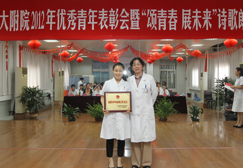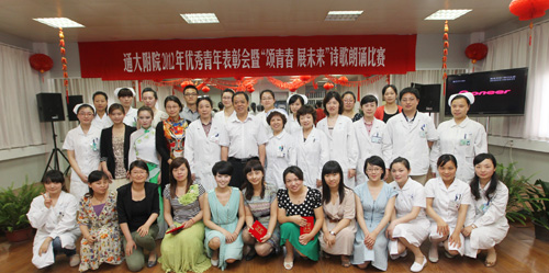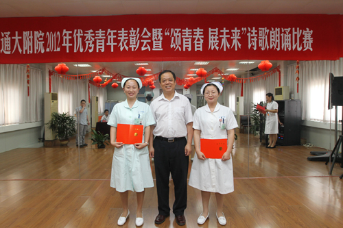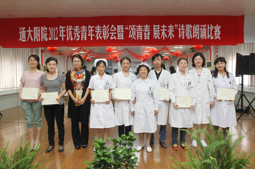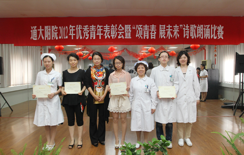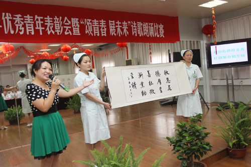 6月5日下午,院团委在工会活动室举办2012年优秀青年表彰会暨“颂青春 展未来”诗歌朗诵比赛。 表彰会上,院团委副书记倪丽云宣读了表彰名单,院党委副书记、纪委书记沈苏闽及相关职能部门负责人为2011年度取得优异成绩的3个先进集体和14名优秀个人颁发了荣誉证书。 随后,“颂青春 展未来”诗歌朗诵比赛在一首《青春之诗》中拉开序幕。选手们精心选材,内容多样,既有经典诗作,也有自己的创作诗篇;既有深情的对诵,也有个人的诵读。选手们把对生活的理解和未来的展望融汇在诗歌里,交织成一幅幅色彩斑斓的图画,充分展示了我院青年热爱生活、施展抱负的青春风采。其中《我用残损的手掌》抒发了对祖国真挚的爱和未来的向往;《铭记五四》再一次把观众带进慷慨激昂的五四画面;《我的青春是白色的》用唯美的手法展示出职业特色和无私奉献;《那一抹绿》配以图片视频和科训展示带来视听享受;《最珍贵的角落》辅以手语表演达到了画龙点睛的效果;《青春畅想曲》汇集诗歌、情景、舞蹈,给人耳目一新的感觉,将比赛推向高潮。经过激烈角逐,急诊科张明香荣获一等奖;手术室祝迪、外宾特需病区白雪荣获二等奖;医学检验科李丽、小儿外科妇科二病区孙健殊和虞秋杰、影像科陆妍和张婷婷等荣获三等奖;消化内科一病区薛诚、妇科一病区吴延陵等8位选手荣获鼓励奖。 党委副书记、纪委书记沈苏闽代表院党委向受到表彰的先进集体和优秀个人表示热烈的祝贺,并希望全院广大青年以胡锦涛总书记在纪念建团90周年大会上提出的五点希望为奋斗目标,认真学习贯彻江苏省卫生厅纪念建团90周年座谈会议精神,弘扬五四精神、传承医院文化,以崇高的理念、顽强的意志,过硬的本领,切实担当起救死扶伤、全心全意为人民服务的神圣使命。要学习身边优秀榜样,把握青春,努力工作,认真做人;立足本职,艰苦奋斗,开拓创新,为医院发展做出应有贡献,以实际行动迎接党的十八大胜利召开。邵惠娟 附:表彰名单 2011年度南通共青团工作优秀单位:院团委 2011年度南通市五四红旗团支部:药剂科团支部 2011年度南通市新长征突击手:吴 优 南通好青年:朱小玲、李 霞 2011年度南通市优秀共青团员:祝 迪 2011年度南通大学五四红旗团支部:检验科团支部 儿科团支部 2011年度南通大学优秀共青团干部:陈丽欧 顾宇锋 2011年度南通大学优秀共青团员: 帅 捷 吉 鹏 李晓娟 赵莉华 施 敏 徐红梅 钱 燕 黄海燕
