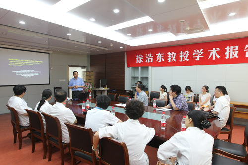 7月5日下午,应我院心血管病研究所邀请,美国罗彻斯特大学医学与口腔学院病理学与实验医学部教授徐浩东,在7号楼一楼会议室举行关于《心脏离子通道的信号调控》的学术讲座。讲座由常务副院长朱健华教授主持,我院心内科医师和相关专业研究生听取了讲座。 徐浩东教授上世纪90年代初毕业于苏州大学医学院,并取得博士学位,后赴美国华盛顿大学医学院和罗彻斯特大学医学与口腔学院,目前主要从事心肺方面病理学研究。发表多篇文章收录于《circulation》、《circulation research》、《国际病理学》等杂志,同时担任《国际病理学》杂志编委、审稿人。 学术报告结束后,徐浩东教授参观了我院心血管病研究所,并对有关的技术问题进行了悉心指导。徐教授对心血管病研究所建设和发展的成绩给予肯定,双方还达成了初步的合作意向。欣 仁