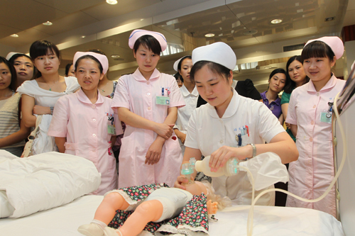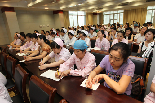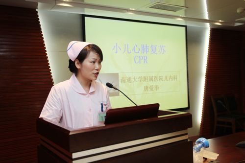 为提高妇儿五片护理人员的急救技能,进一步落实江苏省年轻护士素质提高行动方案,7月3日下午,妇儿五片在5号楼2楼示教室举办2010版小儿心肺复苏理论知识和操作技能培训,近100名护士接受了专题培训。培训由妇儿五片总长沈美云主持,护理部何红副主任现场进行指导。 培训首先由唐爱华护士长通过平面、视频、实物展示等讲授了小儿心肺复苏理论知识,随后护士长殷晓霞、缪爱梅、唐爱华,护士李婷婷四人分两组进行儿童心肺复苏和新生儿心肺复苏的操作演示,同时指导参加培训的护士进行模拟操作。培训结束后,每个病区选派了业务骨干现场进行考核。 今年5月份,唐爱华和殷晓霞两位护士长参加了上海儿童医学中心第11期的继续教育学习班——儿科高级生命支持,这次妇儿五片培训旨在将所学的重要知识传授给每一位护士。培训的内容以2010美国心脏协会心肺复苏指南中有关小儿心肺复苏知识作为依据,对于提高抢救应急技能具有很大的帮助。 护理部何红副主任充分肯定了本次培训的内容,她希望各科护士要以此为契机,通过比赛、急救演练等形式,提高全体护士的急救技能,最终达到全员提高的目的。陈宏伟