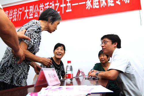 7月28日上午,由我院和南通电视台、南通市老年人活动中心共同主办的“名医进社区 健康伴我行”大型系列公益活动第十五场在开发区中兴街道民主港社区举行。本场活动为家庭保健专场,由我院门诊党支部和药剂党支部共同承办。 南通电视台知名主持人宣梁与我院康复医学科副主任医师郭爱松、药剂科副主任药师徐新、耳鼻喉科副主任护师王志霞在现场以谈话的方式,分别就老年人锻炼误区、常用药品的使用误区、药品如何保存、以及儿童感冒的预防等话题与社区居民进行了互动。现场专家讲解深入浅出、贴近百姓。随后肾脏内科主任医师施辉、儿科主任医师郭飞、门诊部副主任护师姜琴、心内科主治医师郑冬冬、康复医学科主治医师朱振杰等也到现场为民主港社区的居民进行了义诊。活动现场,我院专家还为现场居民带去了几十种常见病的健康教育处方,深受大家欢迎。 “名医进社区 健康伴我行”活动每月举办一场,时间为每月最后一个周六。下一场将于8月25日在学田社区举行,专家将围绕牙齿保健话题与现场市民进行讨论,欢迎广大市民前往现场参加活动。欣 仁