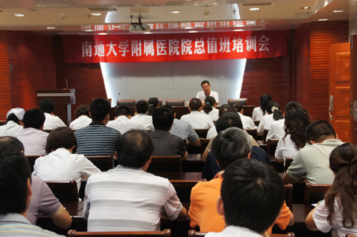 为进一步增强医院总值班人员的医患沟通与协调处理能力,保障值班时段医院安全,8月7日下午,医院在5号楼会议室对全体总值班人员进行了医患沟通专题培训。医务处主任仇永贵担任主讲嘉宾,他针对当下医疗纠纷现状,向大家解读了上级主管部门及我院应对医疗纠纷的组织体系和相关制度,以问答的形式讲解了在值班期间如何提高医患沟通技巧,及遇到医疗纠纷时如何应急处置等。仇主任的讲解深入浅出、实用性强,令与会者获益匪浅。