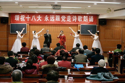 12月14日上午,由江苏省卫生厅离退休干部处、省卫生系统老体协联合举办的老同志 “颂祝十八大、永远跟党走”诗歌朗诵比赛在南京落下帷幕,由我院自主创作编排的,以陈瑛教授捐献眼角膜为题材的配乐诗朗诵——《你看见了吗?》荣获一等奖。该节目在当日下午省厅召开的离退休干部大会上作了汇报表演。省卫生厅党组书记、厅长王咏红,厅党组成员、省纪委驻厅纪检组组长周政兴亲切看望了参赛选手并合影留念。 配乐诗朗诵——《你看见了吗?》以我院陈瑛教授捐献眼角膜的真实故事为原型,创编人员将诗朗诵、舞蹈、音乐等艺术形式揉为一体,讲述了陈瑛教授“留下光明,让生命和爱心延续”的真情故事,诠释了通大附院“大医精诚 以宏慈善”的医院精神,展示了通大附院百年深厚的文化底蕴和丰富的人文积淀。比赛现场,她们以感人的内容、深情的朗诵,优柔的舞姿和生动的表演,获得台下一片掌声,情深处更是让人潸然泪下。掌声的背后凝聚着我院离退办、老体协参演人员辛勤的汗水和不懈的努力。 秀 凤