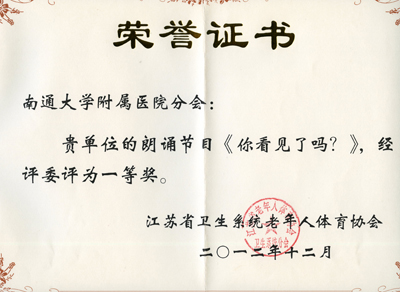 | 我院诗朗诵在省卫生厅荣获一等奖 |