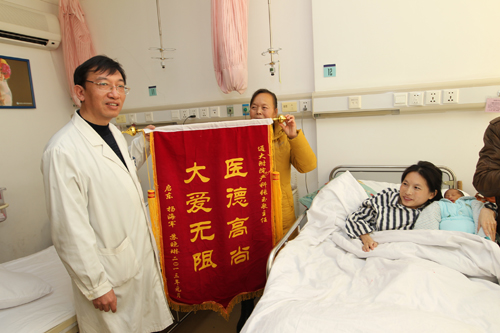 1月18日报道过的“美人鱼”女孩晓琳和她的小宝宝恢复良好,今日母子俩一起从南通大学附属医院出院。 晓琳今年28岁,身高1米1,分娩前体重不到30公斤,身体严重畸形,只能跪着依靠小板凳行走,躺在床上时,腿脚无力犹如两扇鱼尾,好像一条“美人鱼”。晓琳怀孕后慕名来到通大附院找到妇产科张玉泉主任求治,张主任根据晓琳的情况向院部申请全院大会诊,麻醉科、心内科、呼吸科、影像科等各科专家齐聚妇产科,为晓琳制定了周密的手术方案。剖腹产手术顺利,晓琳生下一个1800克的男婴,由于早产,病情变化快,婴儿出生时出现了窒息,经过儿科、麻醉科等医务人员的积极抢救,惊险度过难关。 出院前,晓琳全家给医护人员送上了锦旗,晓琳动情地说:“若不是张玉泉主任收留我们,我都不敢想象会出现什么结果呢。”据通大附院儿科胡新民主任医师介绍,小宝宝早产后出现窒息,经过治疗,三天后就撤除了呼吸机自主呼吸,恢复得很快,目前,宝宝主要吃母乳,每顿50ml,大小便正常,反应良好,预计长大后没有后遗症。傅 轩 刊登于1月29日《江海晚报》