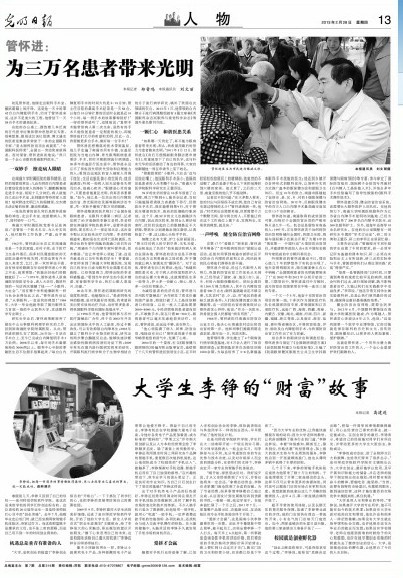 2月28日,《光明日报》以《为3万名患者带来光明》为题,用大半幅版面的图文量,专题报道了我院眼科教授管怀进从医几十年来,为眼科事业不懈奋斗的先进事迹。文章以多个真实的故事为线索,以客观数据和相关成就为基础,全面介绍了管怀进教授在眼科学医、教、研等各领域所从事的工作和取得的成绩。欣 仁